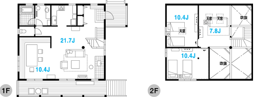 延床面積:136.1m2(41.1坪) デッキ・ポーチ:23.0m2(6.9坪) |